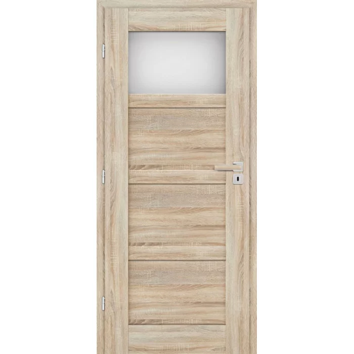 KONSTRUKCE Křídlo vyrobené v rámové technologii STILE. Masivní 14cm rám MDF pro povrchy 3D GREKO. Masivní 14 cm dřevěný rám pro povrchy PREMIUM a CPL LAMINÁT, za příplatek ve vybraných odstínech Masivní zpevňující příčky o tloušťce 22 mm. Pevný kolíkový spoj a na perodrážku – zvýšená pevnost dveří. Estetické zasklení bez použití rámečku přidává dveřím luxusní vzhled. Mírně zaoblené hrany dveří, na hraně nejsou žádné spoje, což přispívá k delší životnosti dveří. Povrchová úprava: nejpopulárnější povrch 3D GREKO se zvýrazněnou strukturou dřeva, CPL LAMINÁT se zvýšenou odolností nebo strukturovaný velice odolný povrch PREMIUM. Možnost objednání dveří vyšších o 4,5cm včetně zárubní s příplatkem. KOVÁNÍ Tři stříbrné panty šroubovací s horizontální regulací ve falcovém provedení nebo tři stříbrné skryté panty s horizontální a vertikální regulací v bezfalcovém provedení. Klasický zámek ve falcovém nebo magnetický v bezfalcovém křídle na dozický klíč, na cylindrickou vložku, WC zámek, úsporný zámek (jen klika). PROSKLENÍ 4 mm tvrzené matné nebo čiré sklo v ceně dveří, cena je stejná pro všechny varianty prosklení. Možnost volby matné (A-avers) a hladké (R-revers) strany.