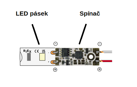 • Dotykový senzor – zapnutí / vypnutí světla dotykem libovolného místa na LED profilu s nainstalovaným senzorem